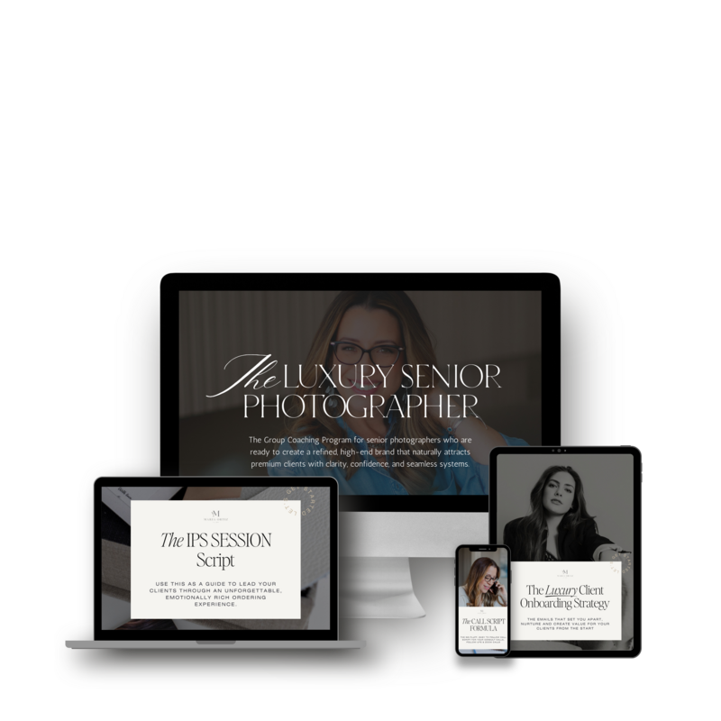 If it’s in my client workflow, you get access to it inside the program — every template, script, and pricing breakdown I use to consistently book $3–5k senior sessions and run a high-end, profitable business.